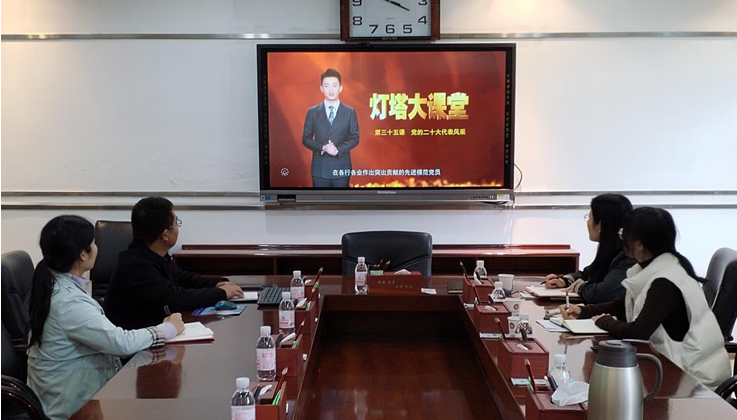 10月19日, 国际交流与合作处党支部全体党员在办公北楼209会议室开展主题党日活动,集体学习“灯塔大课堂”第三十五课《党的二十大代表风采》。